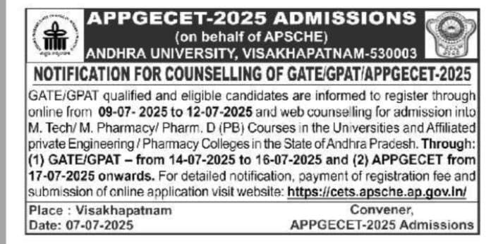 APPGECET 2025 ADMISSIONS NOTIFICATION ANNOUNCED